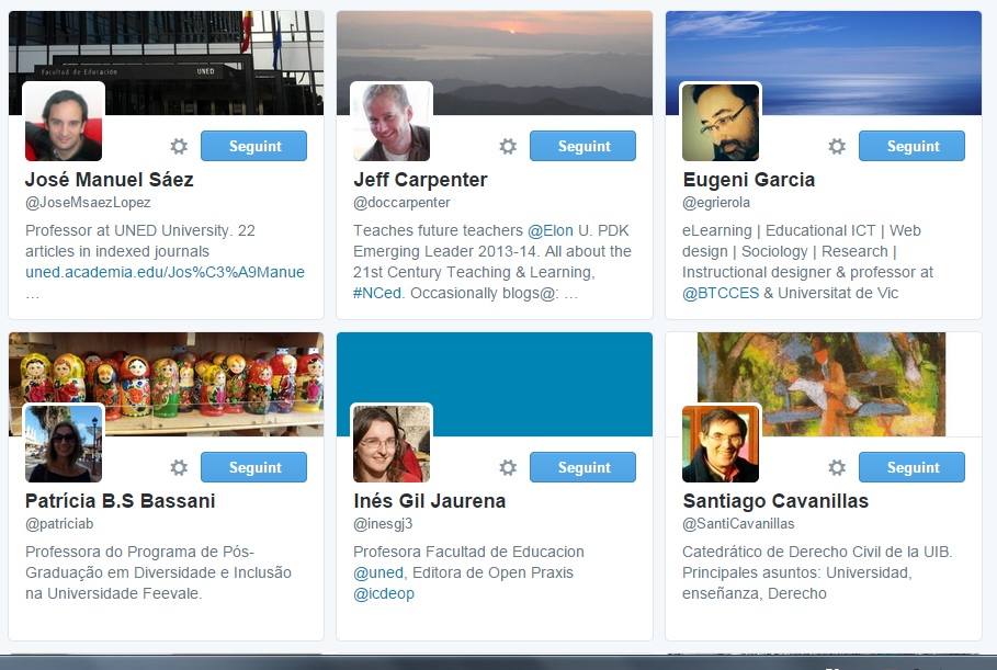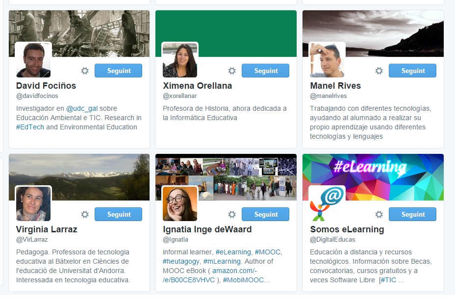 Aquests són uns dels twitters que estic seguint, relacionats amb el món educatiu.